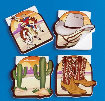 Spice up the Western Party with Something Different! The Cowboy Notepads are an attractive addition for your cowboy and western party at an affordable price that keeps your check book as happy as your guests. And since no cowboy and western party is complete until everything is way out west, this notebook is a great goody bag filler! 24 notebooks per package. Assorted styles. Notebook is approximately 3 1/2" long and wide. Blank notebook pages. A must have way out west accessory, great for Saddle Ridge Ranch themed vacation Bible schools, Ho downs, and cowboy and western celebrations. Part of Stationery > Notebooks