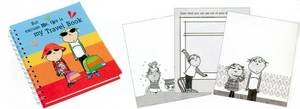 Charlie and Lola Travel Journal The cover reads: But excuse me this is my Travel Book ; A very special Charlie and Lola book for collecting, coloring, stickering, scribbling and writing 80 pages with pocket and elastic binder. ; Size: 7.5"x7.25"x.5"