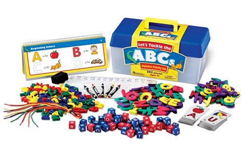 A great way for children to tackle the alphabet, this set lets them practice with capital and lowercase letter shapes, stringing together simple words with letter beads and practicing writing skills. Includes lacing letters with laces, uppercase and lowercase magnetic soft foam letters, soft foam alphabet dice, alphabet puzzle cards, magnetic write-and-wipe board with eraser and write-and-wipe crayons (282 pieces in all!), and a spiral bound activity book.